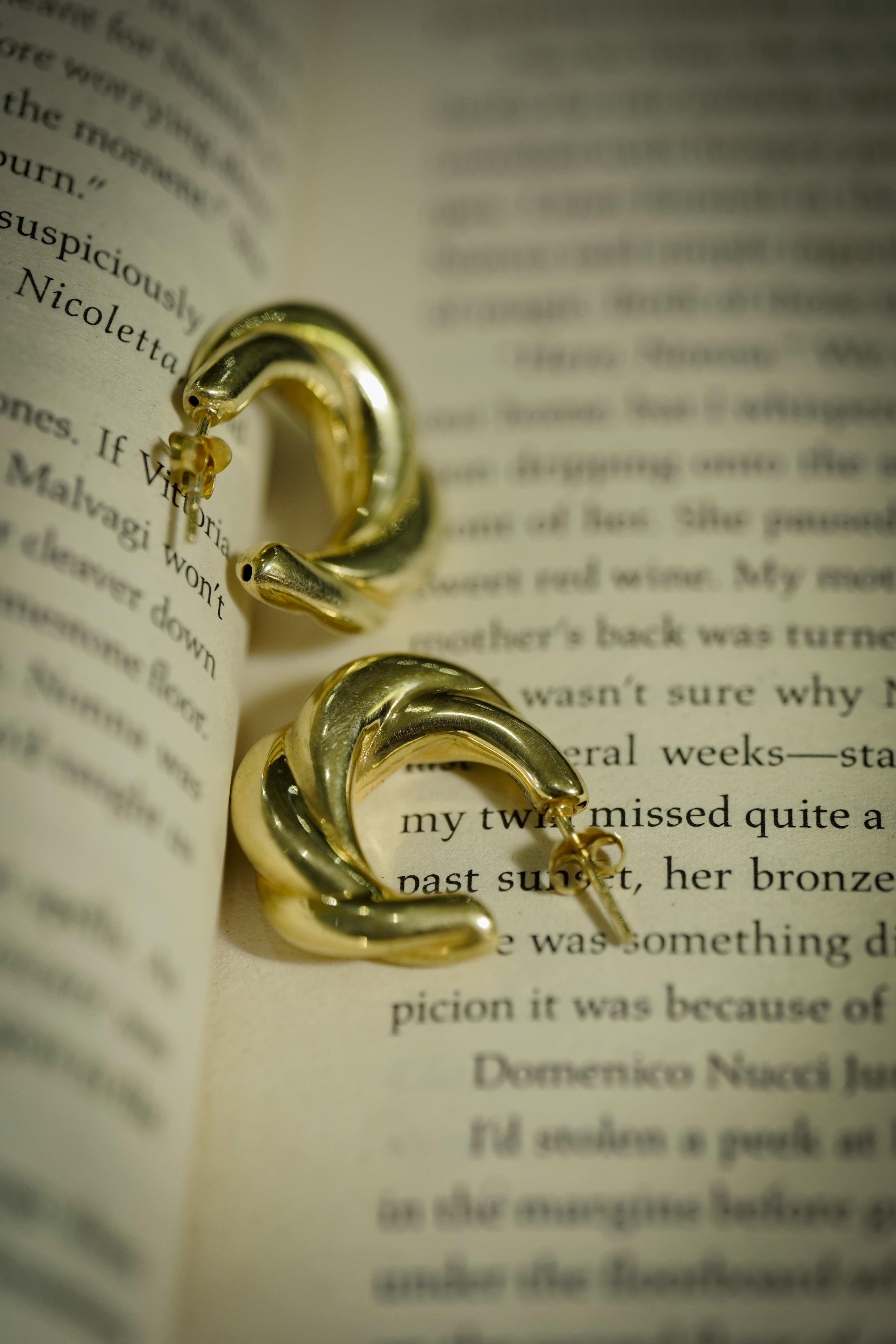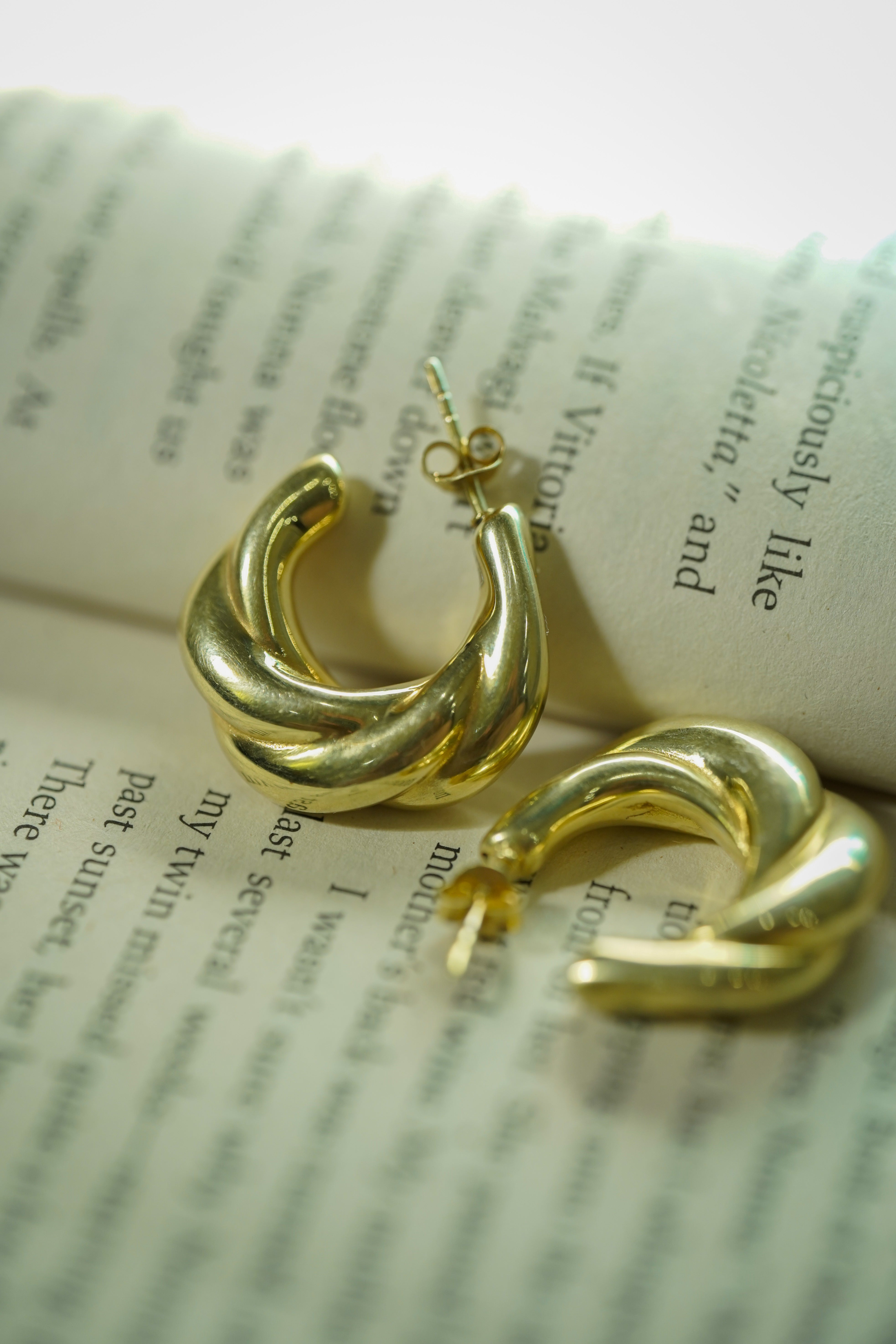 Chic, small hoops featuring a voluminous, sculpted twisted design. Finished with a rich Gold Plated layer over fine 925 Sterling Silver and authenticated by the Kuwait Ministry stamp for certified purity and modern luxury.