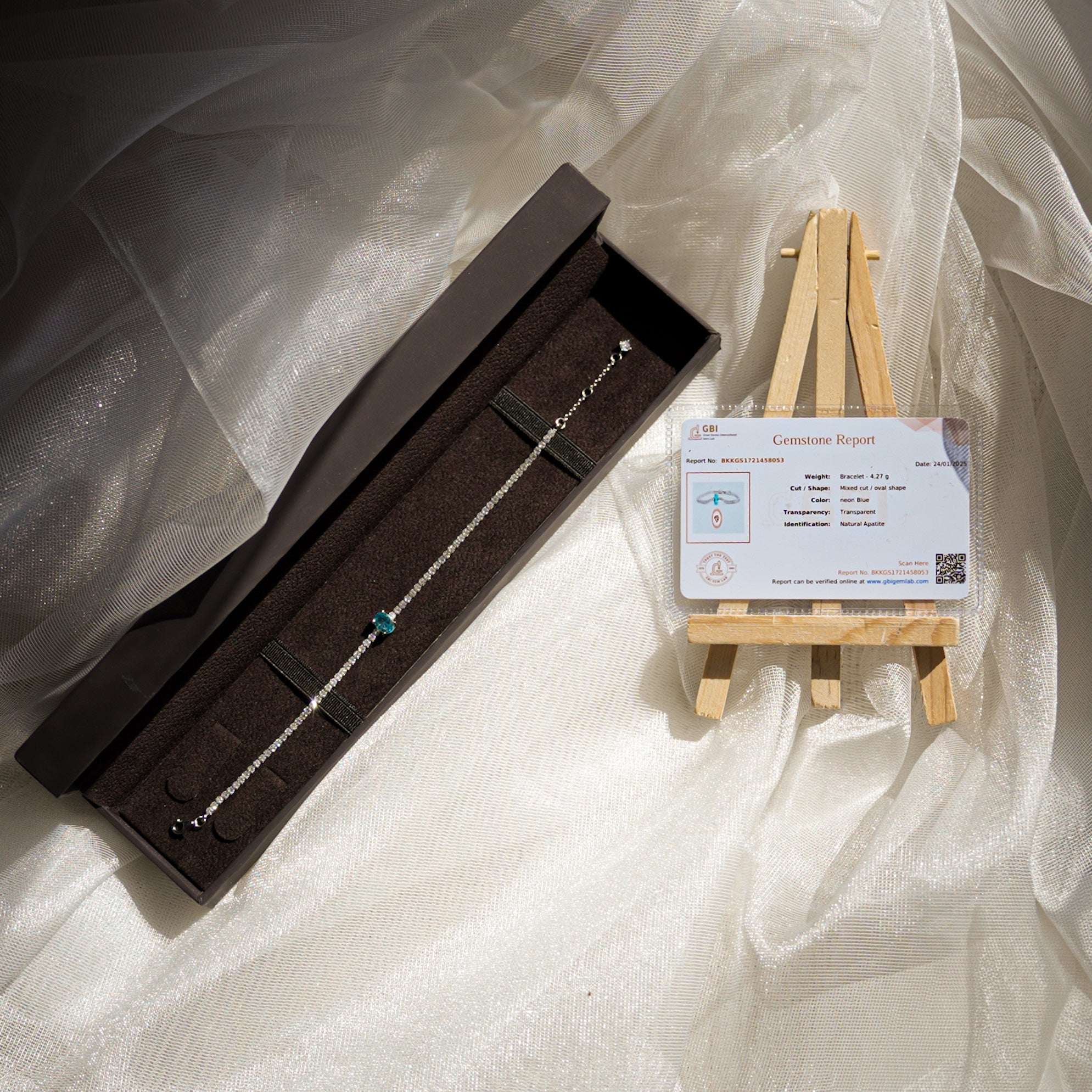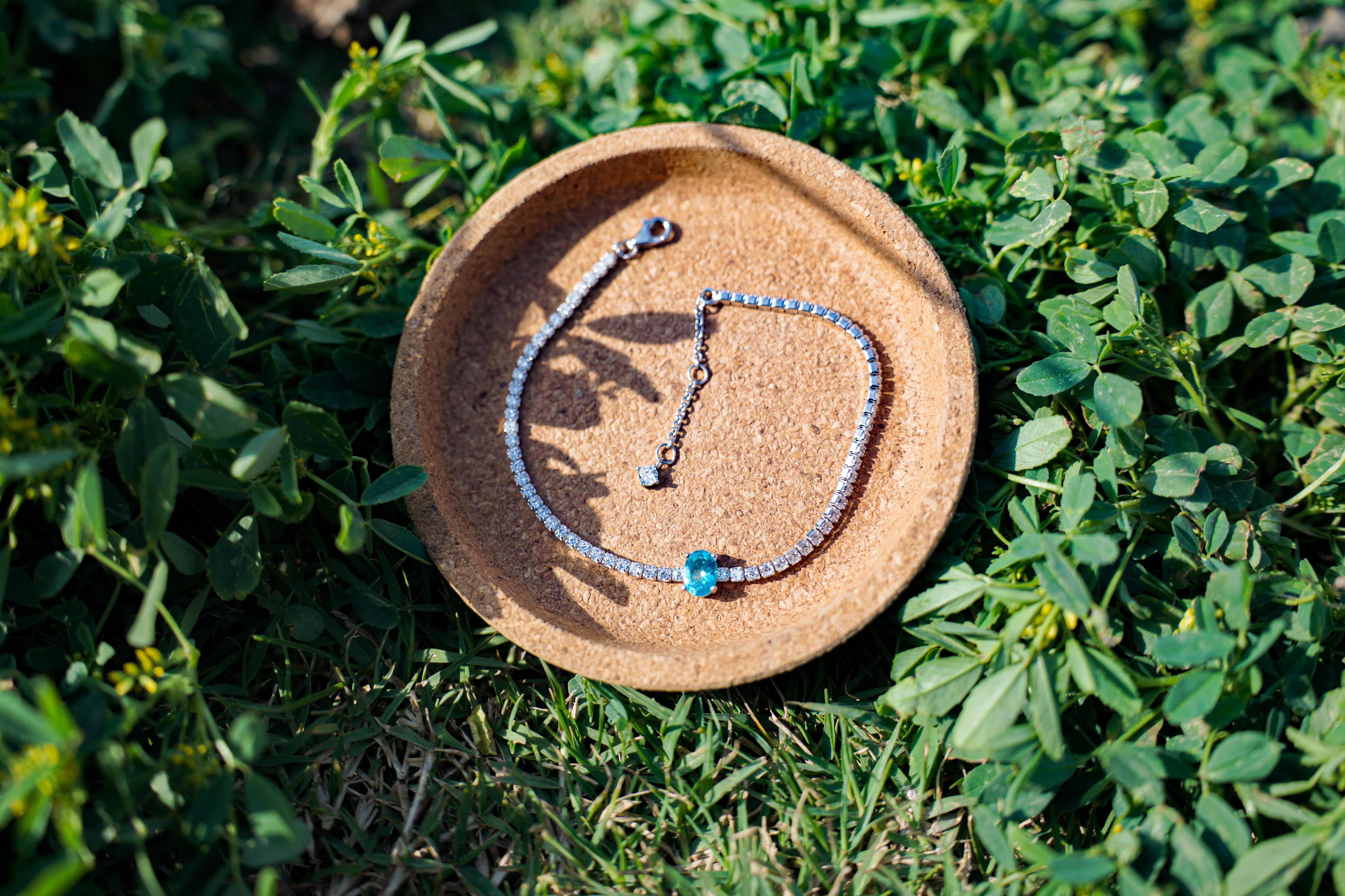 Delicate 925 Sterling Silver tennis bracelet featuring a single, certified blue Topaz centerpiece and adjustable chain. Kuwait Ministry Stamped.