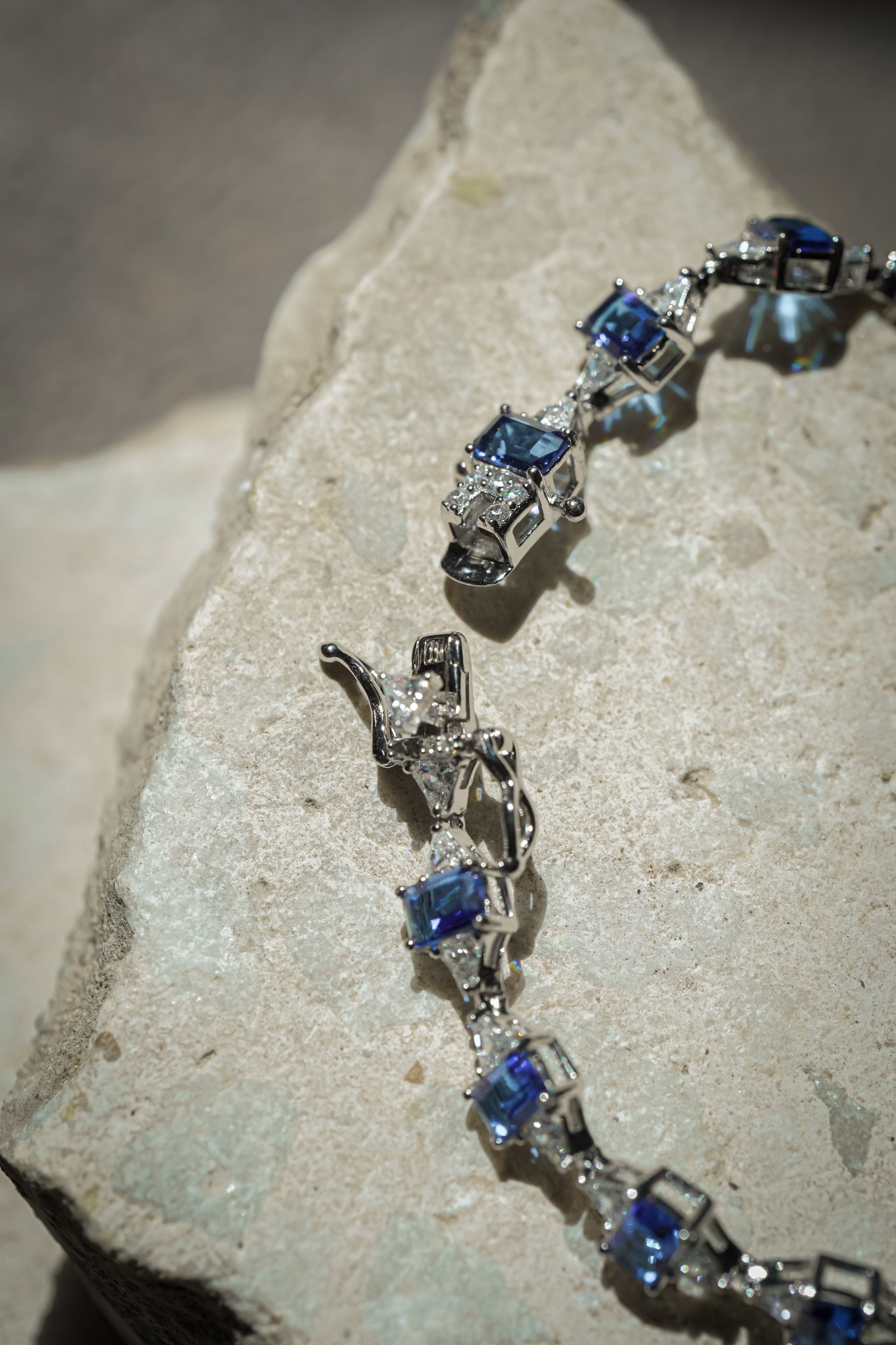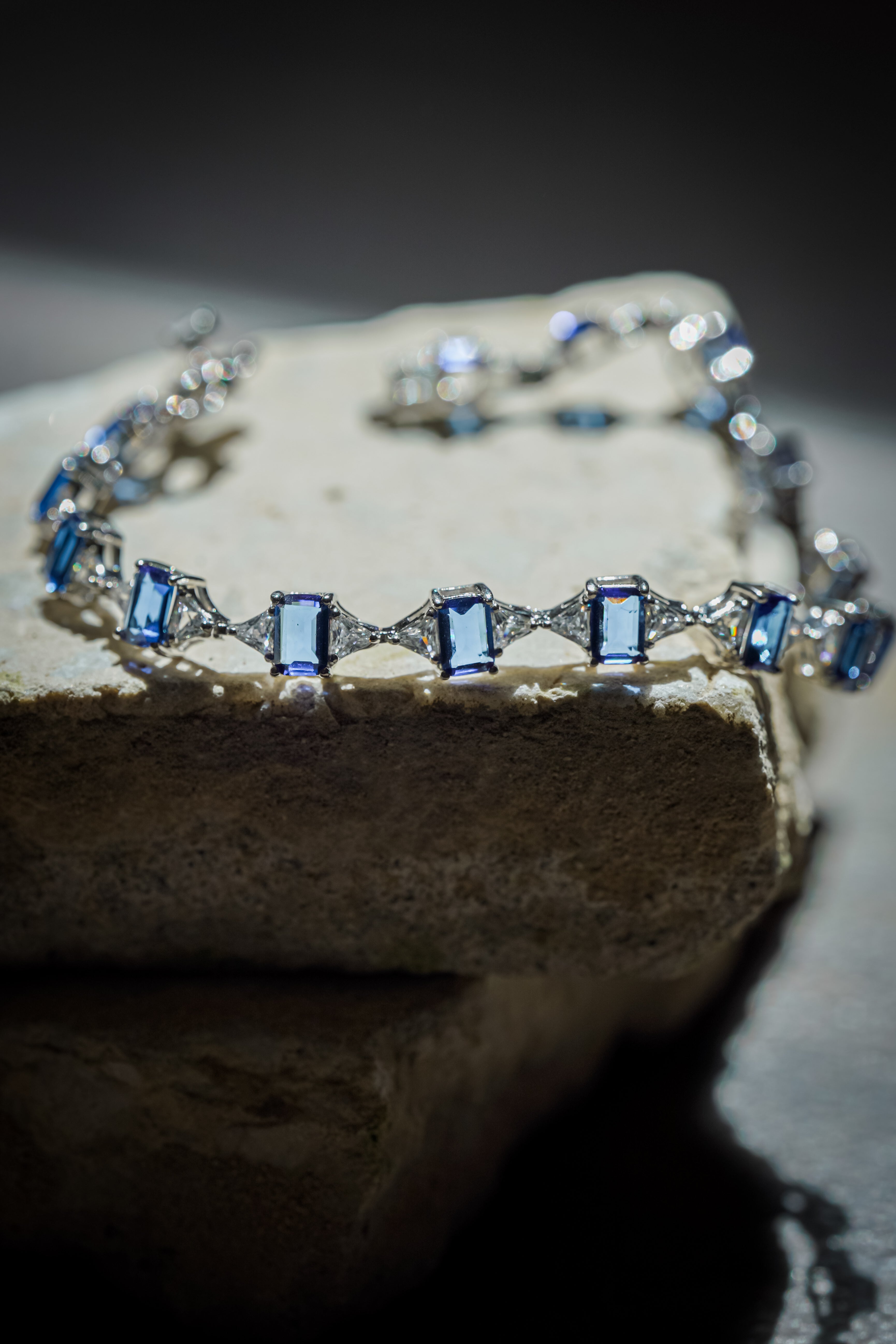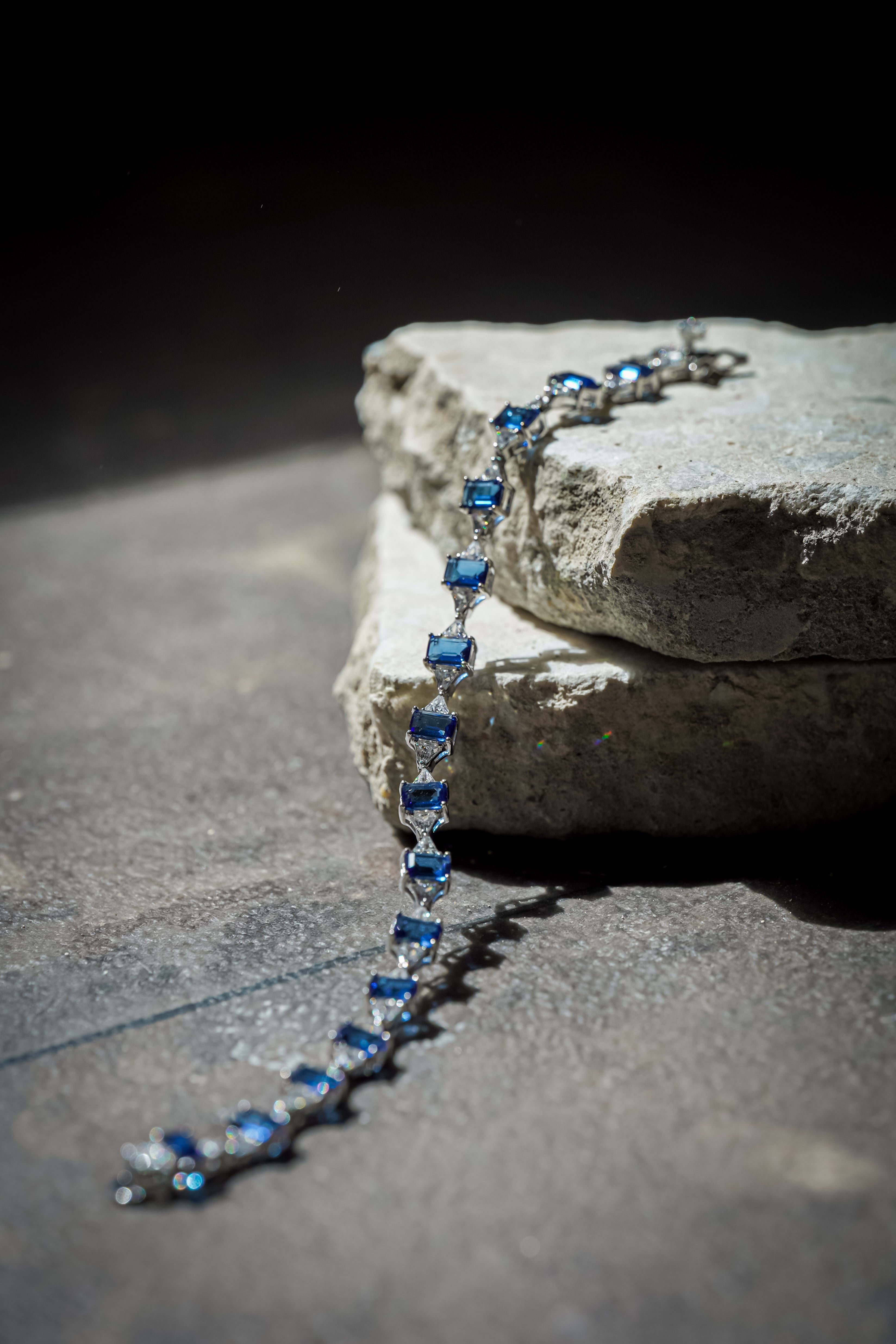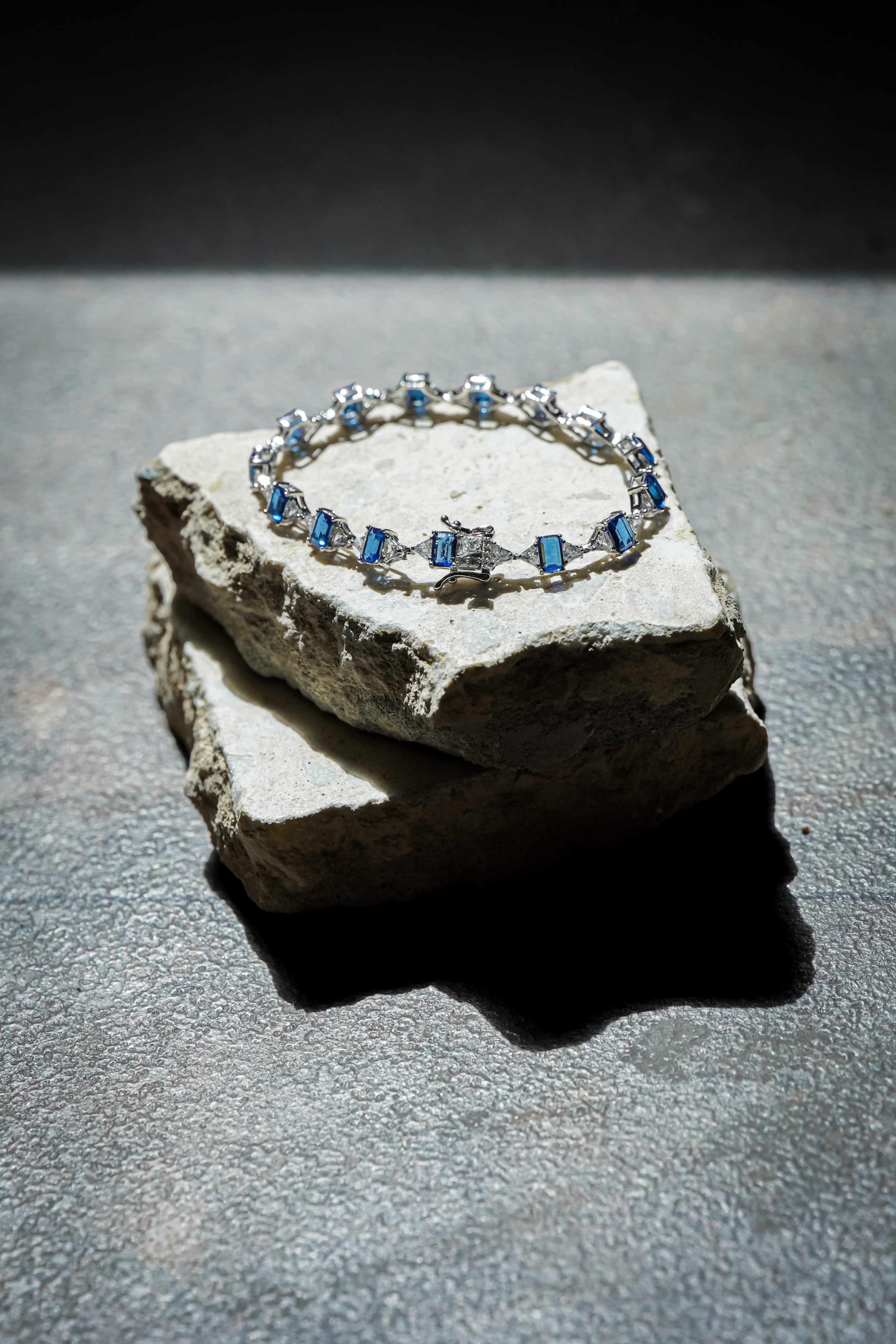 Classic 925 Sterling Silver tennis bracelet featuring intense Blue Zircon stones. Kuwait Ministry Stamped for quality.