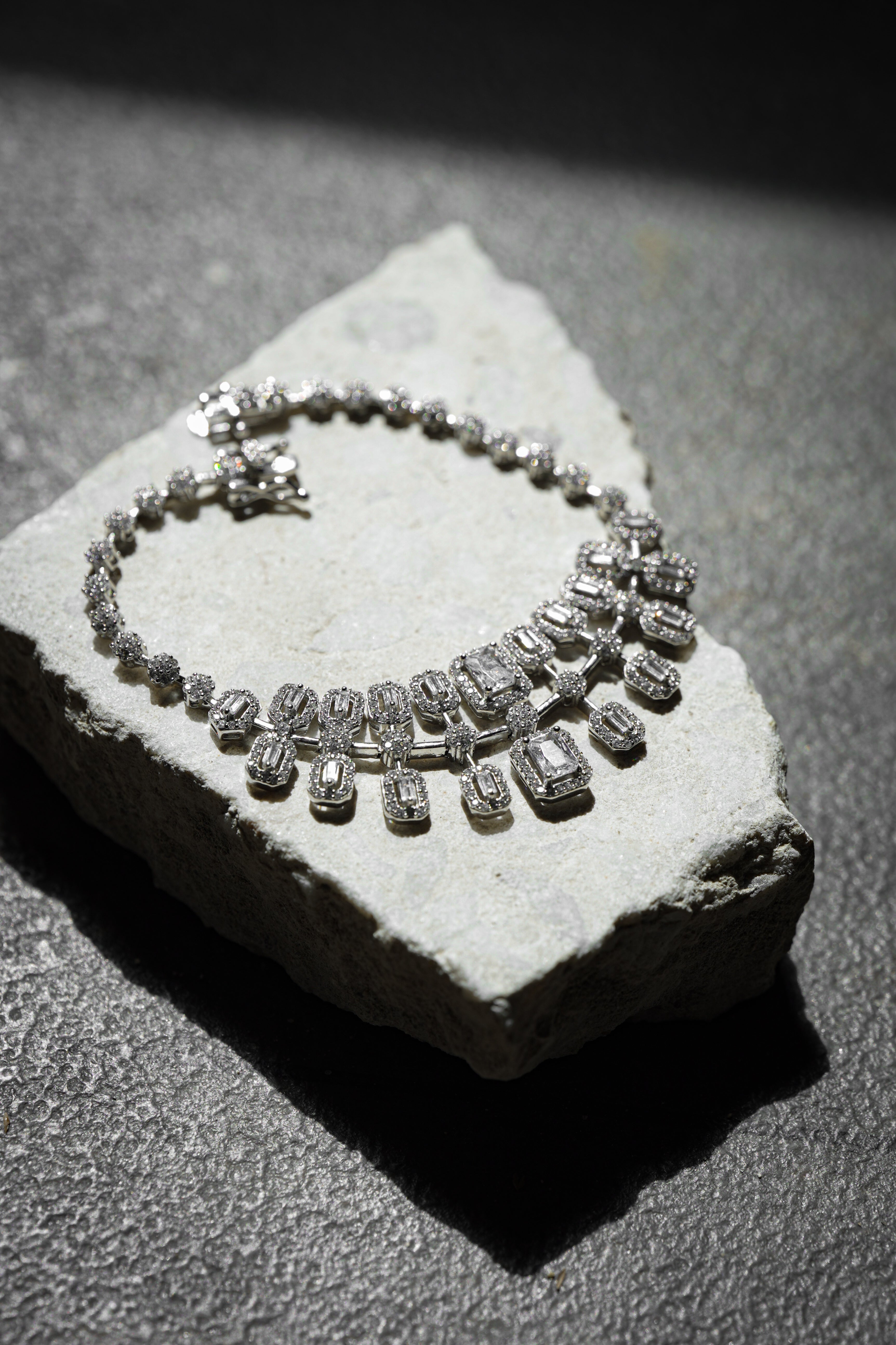 Grand 925 Sterling Silver bracelet with multi-tiered Zirconia links and drops in a stunning chandelier design. Kuwait Ministry Stamped.