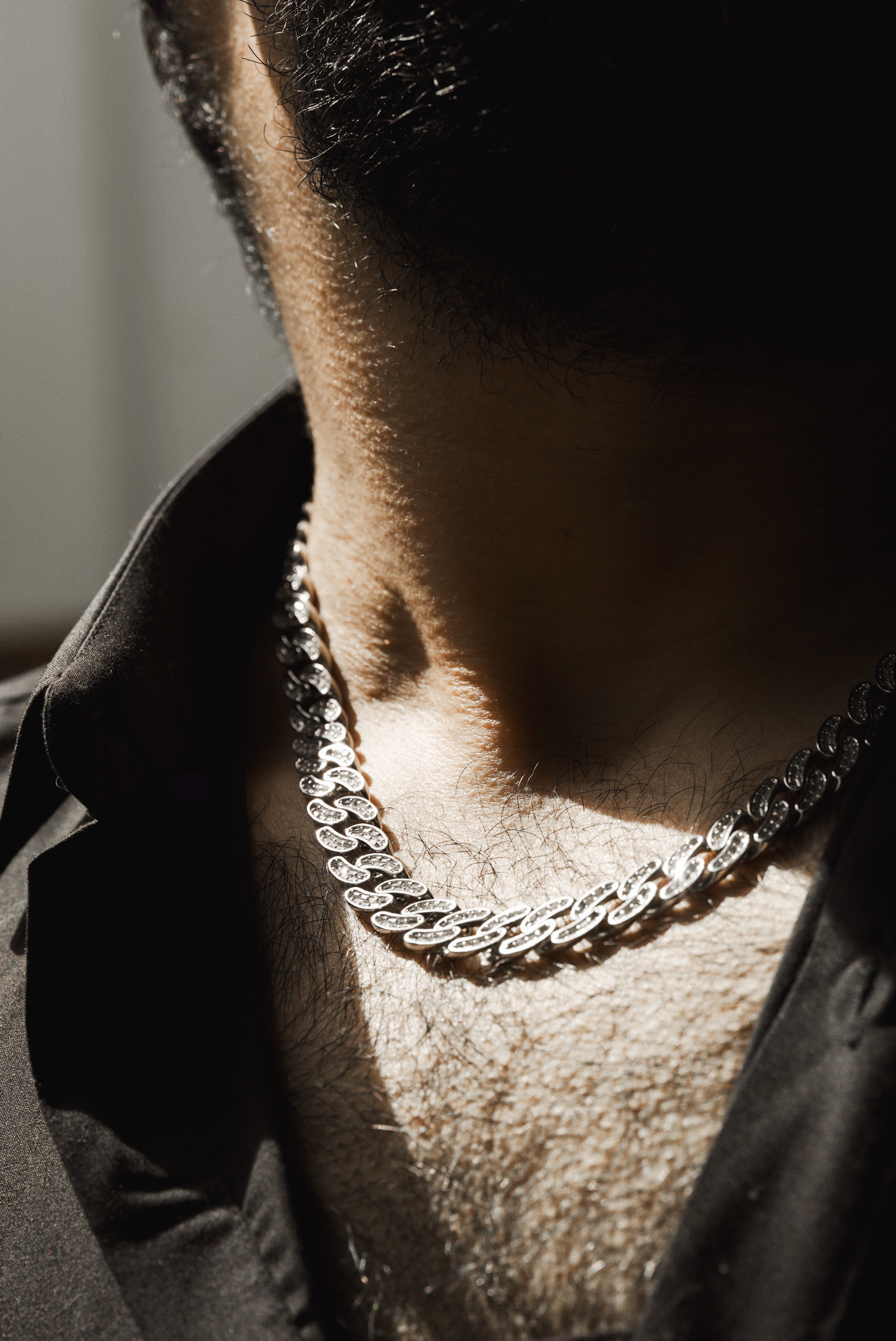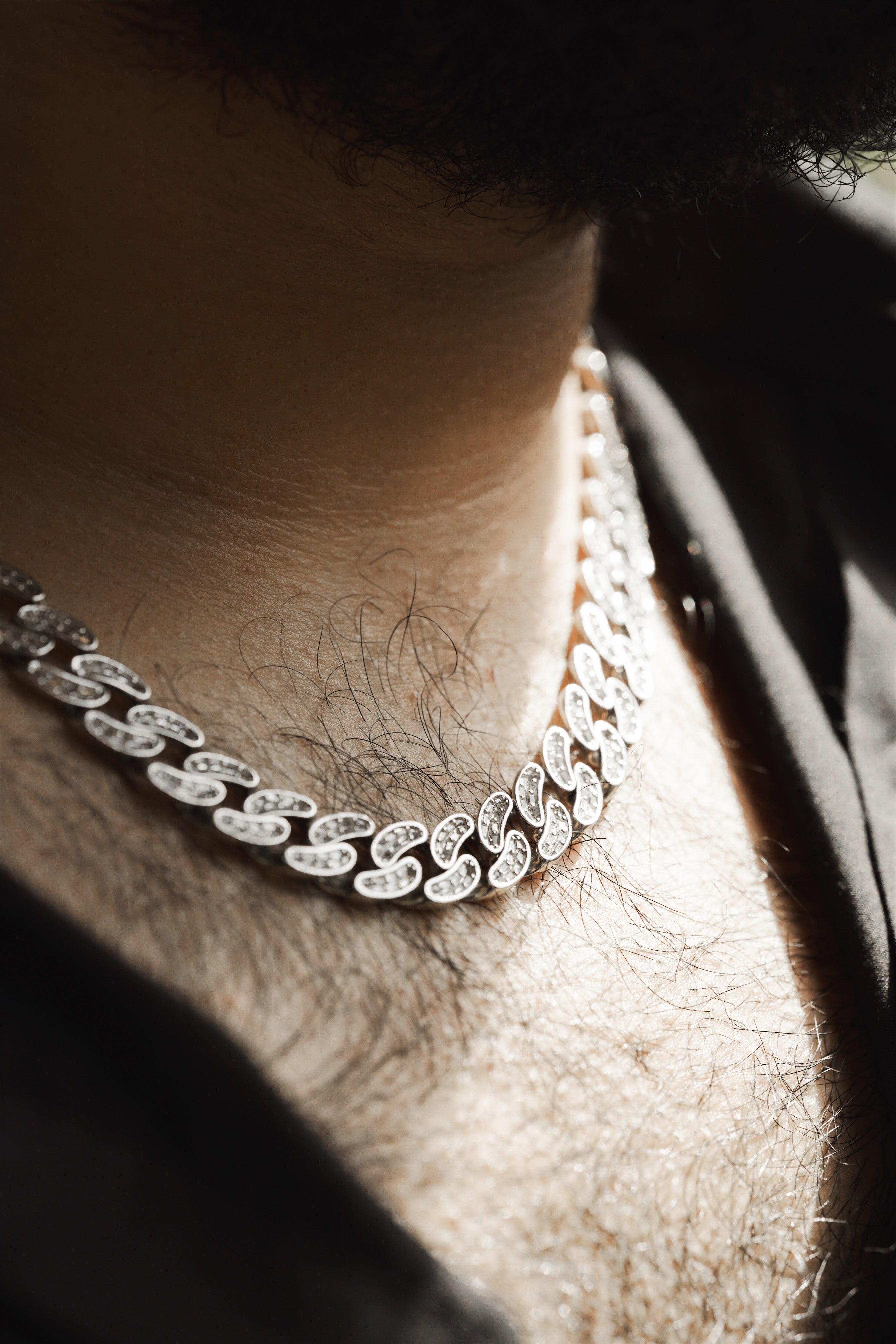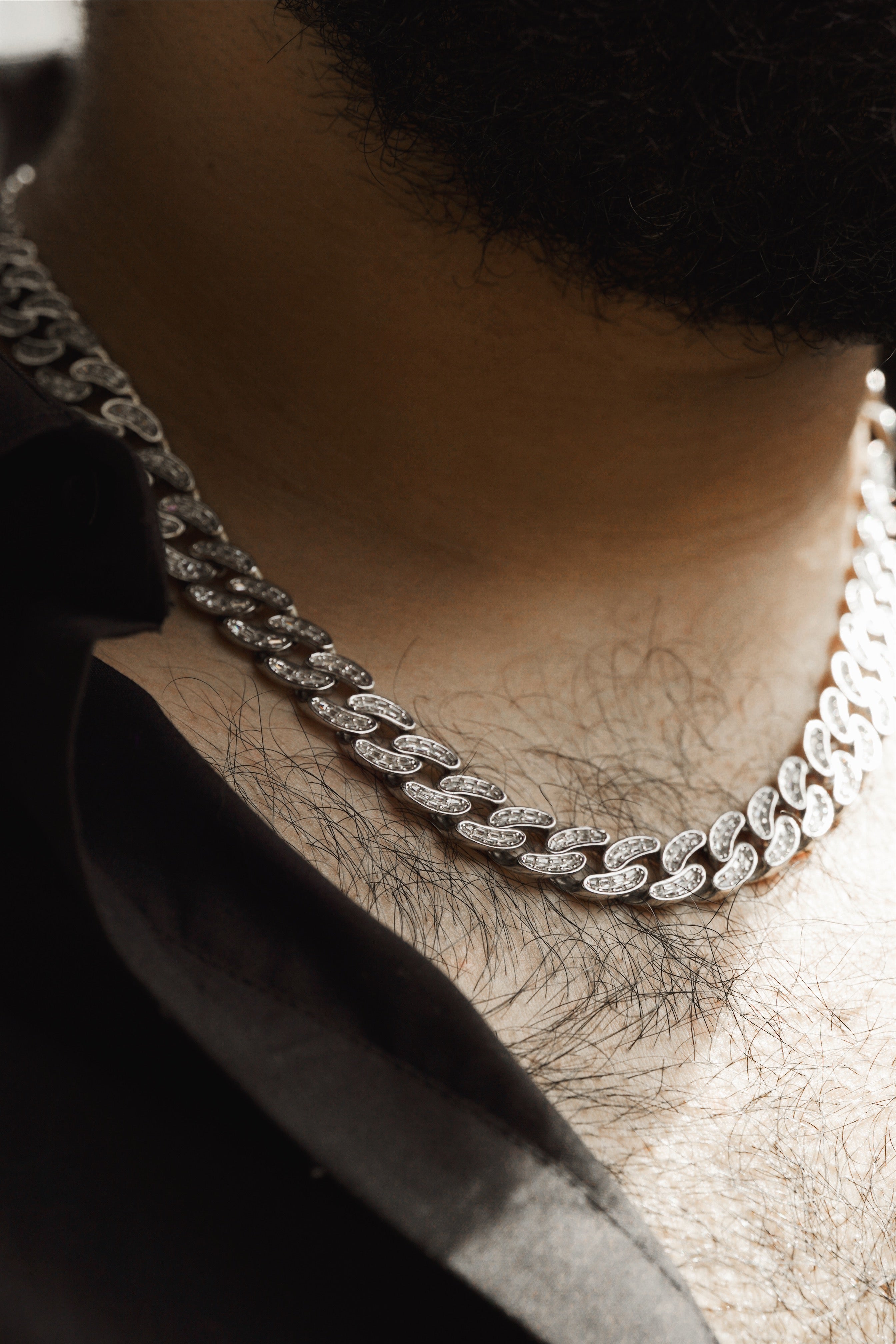 Bold 925 Sterling Silver Cuban Men's Necklace completely paved with dazzling Zirconia stones. Kuwait Ministry Stamped.
